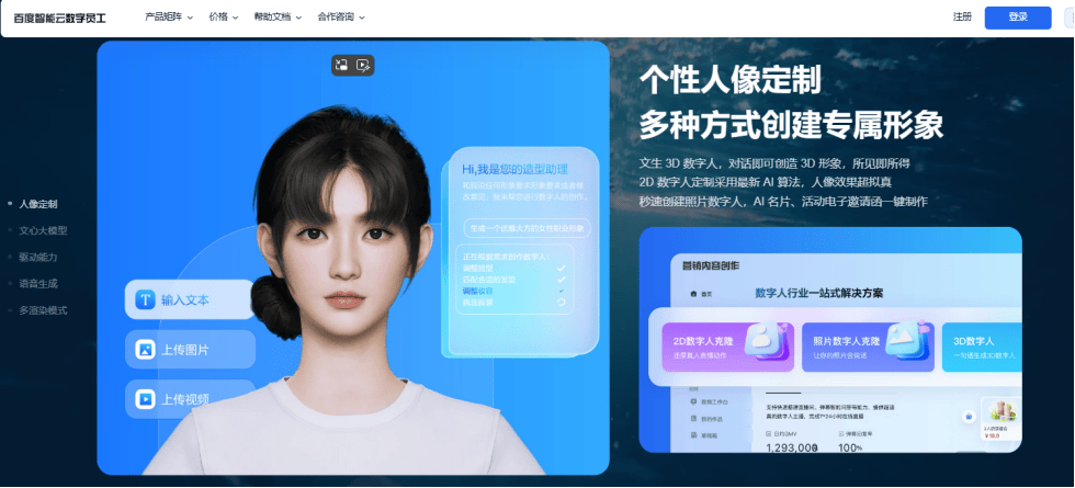 腾讯云智能数智人采用语音交互、虚拟抽象模子生成等多项AI手艺,对应功能为照片数字人。